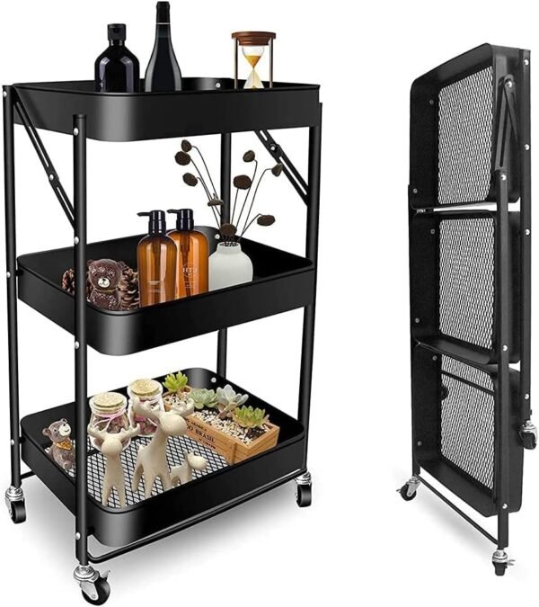 3-Tier Foldable Storage Cart with Wheels - Practical and Organized