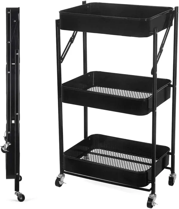 Rafu hii ina muundo unaokunjwa, hivyo ni rahisi kuhifadhi wakati haitumiki. Muundo wake wa tabaka nyingi huhakikisha kuwa una nafasi ya kutosha kwa mahitaji yako yote ya jikoni huku ukiweka kila kitu kikiwa safi na kilichopangwa vizuri.