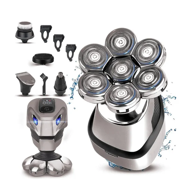 The Electric Men’s Grooming Kit includes a high-performance 7D electric head shaver that adapts to the contours of your head and face for a smooth, comfortable shave. With five interchangeable attachments, you can easily switch between shaving, trimming, and grooming tasks. The cordless design and rechargeable battery offer convenience and flexibility, allowing you to groom yourself anytime, anywhere. The ergonomic handle ensures a comfortable grip, making your grooming routine effortless.